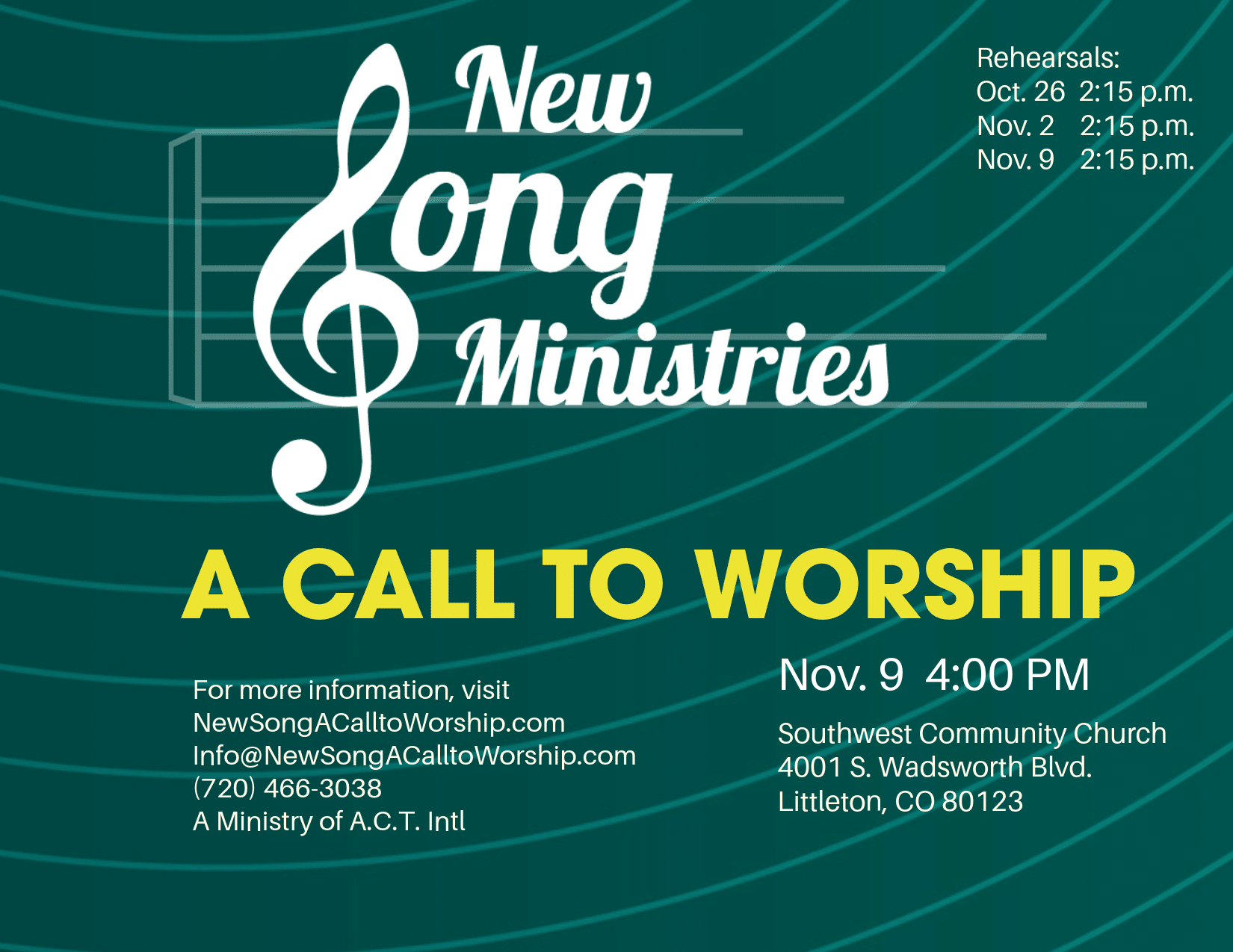 Participate in the worship choir with New Song Ministries! There will be rehearsals for the public leading up this amazing spirit filled service! If you feel called to be apart… |