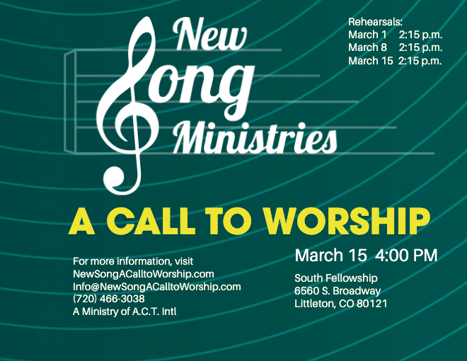New Song Ministries invites anyone who is interested in joining the choir or orchestra to register on New Song Ministries’ website. Those who register will be sent the music to practice on their own, then join for a rehearsal on March 1, March 8, and March 15 at 2:15pm.